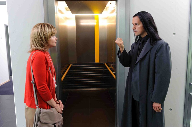 Er ist der Tod (Christoph Maria Herbst, r.) - und Jela (Annette Frier, l.) steht auf seiner Liste. Doch die lebenslustige junge Frau denkt nicht im Traum daran, sich widerspruchslos hinzugeben. Den Geburtstag ihrer Tochter in sechs Wochen will sie auf jeden Fall noch erleben ...Bild: © SAT.1 / Willi Weber