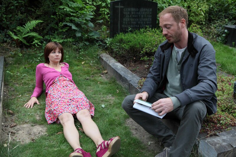 Machen ein Grabstätten-Probeliegen: Jela (Annette Frier, l.) und Tom (Johann von Bülow, r.) ...Bild: © SAT.1 / Willi Weber