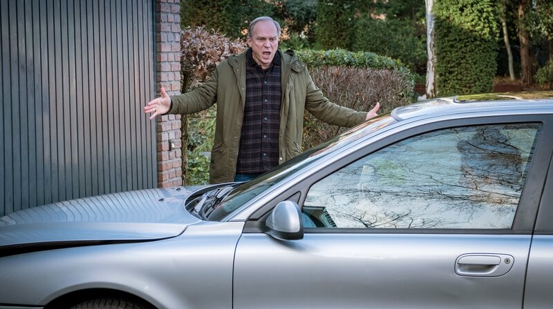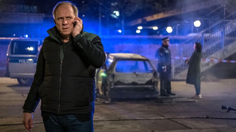 ARD Degeto UND WER NIMMT DEN HUND?, am Montag (29.06.20) um 20:15 Uhr und um 02:10 Uhr im ERSTEN. Georg (Ulrich Tukur) hat einen Verdacht, wer das Auto seiner Freundin angezündet hat © ARD Degeto/Boris Laewen, honorarfrei - Verwendung gemäß der AGB im engen inhaltlichen, redaktionellen Zusammenhang mit genannter Degeto-Sendung und bei Nennung "Bild: ARD Degeto/Boris Laewen" (S2+). ARD Degeto/Programmplanung und Presse, Tel: 069/1509-335, degeto-presse@degeto.deBild: © ARD Degeto/Boris Laewen / ARD Degeto/Programmplanung und P