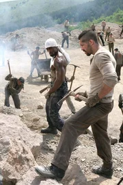 Während der Arbeit im Steinbruch freunden sich beiden Kontrahenten Boyka (Scott Adkins, l.) und Turbo (Mykel Shannon Jenkins, r.) an. Boyka entwickelt einen Plan, wie Turbo der Niederlage gegen den Kolumbianer entgeht, damit er nicht wie die anderen Verlierer erschossen wird ...