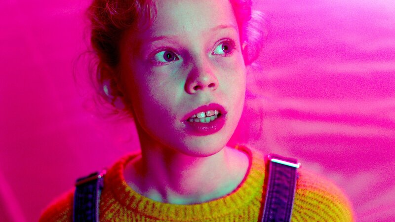 Jette (Bella Bading) ist neugierig und lässt sich auf das rot gekleidete Wesen ein.Bild: © MDR/Janne Ebel