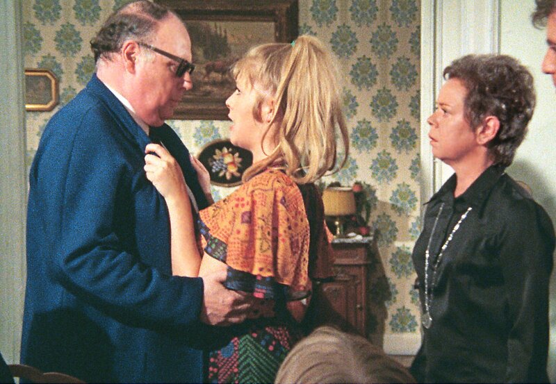 Unter den Augen von Tante Heidelinde (Ruth Stephan, re.) stellt der tollpatschige Willi (Heinz Erhardt) seine partyfreudige Nichte Biggi (Jutta Speidel) zur Rede.