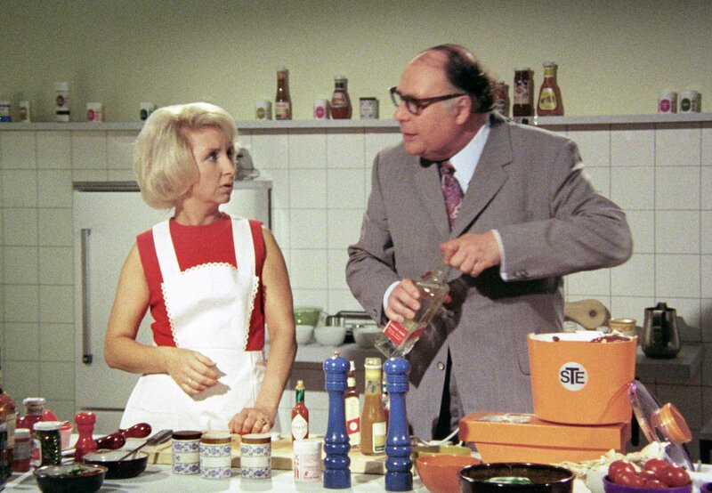 MDR Fernsehen UNSER WILLI IST DER BESTE, am Freitag (05.12.14) um 12:35 Uhr. Im Studio der Fernsehköchin Elsetraut Knöpfke (Edith Hancke) richtet der Vertreter Willi Winzig (Heinz Erhardt) ein heilloses Durcheinander an.