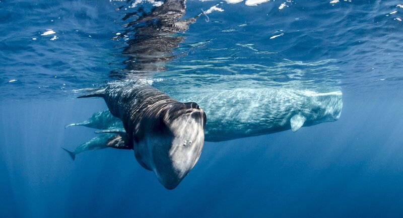 Pottwal im Indischen Ozean - Der Pottwal produziert die lautesten Geräusche in der Tierwelt. Man hat Klicklaute, mit denen diese Tiere kommunizieren, aufgenommen, die 230 Dezibel erreicht haben. +++ Die Verwendung des sendungsbezogenen Materials ist nur mit dem Hinweis und Verlinkung auf RTL+ gestattet. +++