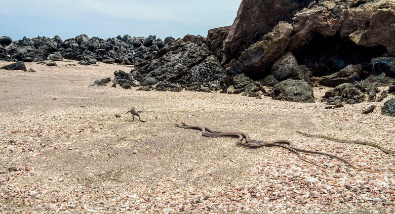 Frisch geschlüpfte Meerechse auf Fernandina, Galapagos - Die Meerechse kann im Meer nach Nahrung suchen, sie ist die einzige Art unter allen Echsen, die das tut. Dieses Exemplar wird kurz nach dem es geschlüpft ist von einer Horde Schlangen gejagt. +++ Die Verwendung des sendungsbezogenen Materials ist nur mit dem Hinweis und Verlinkung auf RTL+ gestattet. +++
