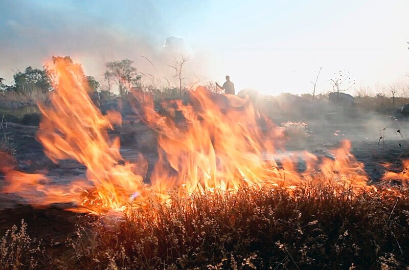Einmal im Jahr unternehmen die Mitglieder des Volks der Wunambal Gaambera eine Feuerwanderung durch ihr Land.Bild: © phoenix/SWR/Peter Moers