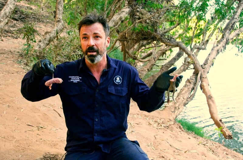Wildtiertechniker Miles Brody präpariert die giftigen Aga-Kröten mit einem Brechmittel, um zu verhindern, dass die Krokodile an dieser Beute sterben.Bild: © phoenix/SWR/Peter Moers