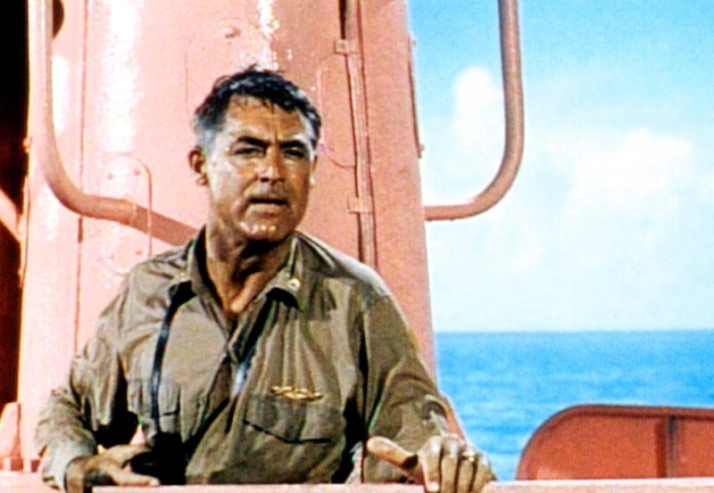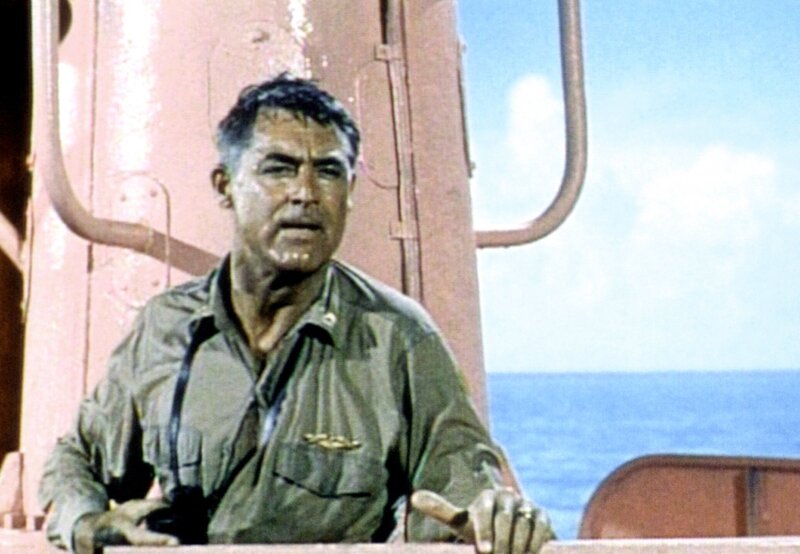 Kapitän Sherman (Cary Grant) ist mehr als überrascht, als er sein U-Boot im schönsten Rosa leuchten sieht.Bild: © ZDF und WDR/DEGETO