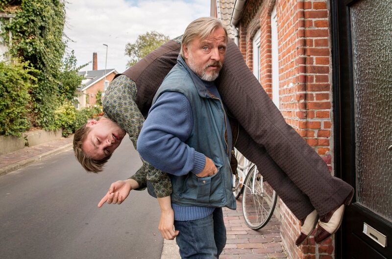 Die beiden mehrfach preisgekrönten Nordlichter Axel Prahl und Jonas Nay geben ein Heimspiel in der norddeutschen Komödie "Vadder, Kutter, Sohn". "Tatort"-Kommissar Prahl ist als lässiges Schlitzohr und passionierter Shanty-Musiker zu sehen, Nay spielt den "verlorenen Sohn", der nach Jahren in Hamburg nach Dithmarschen zurückkehrt. In seinem Heimatort ist zwar viel Zeit vergangen, aber alles wie einst geblieben: von den alltäglichen Tricksereien seines Vaters bis zur 1970er-Schlagermucke in der Dorfkneipe. Zu der Musik von Jakob Ilja, dem Gitarristen der Kultband "Element of Crime", inszenierte Regisseur Lars Jessen mit viel trockenem Humor einen Vater-Sohn-Konflikt zwischen zwei Sturköpfen, die vom selben Schlag sind. Knud nimmt das Leben, wie es kommt. Seine Familie ist seit jeher in einem Dithmarscher Küstenkaff ansässig. Hier hat Knud sich nicht gerade durch Erfolg und Fleiß hervorgetan. Dafür ist er sehr umtriebig und schlägt sich neben der Krabbenfischerei mit illegalen Sportwetten und kleinen Tricksereien durch. Eigentlich sieht er alles ziemlich entspannt. Einzige Ausnahme: sein Shanty-Traditionschor, dessen Leiter er in vierter Generation ist und für den er mit allen Mitteln die begehrte Auszeichnung zum 100-jährigen Chorbestehen bekommen will. Ungewohnt zielstrebig zerstreitet sich Knud dafür sogar mit seiner Lebensgefährtin Nadja und seinem Kompagnon und Freund Addi. Damit nicht genug, taucht auch noch Knuds "verlorener" Sohn Lenny auf - nach zehn Jahren Funkstille. Zunehmend gerät Knud von allen Seiten unter Druck: Die Krabben gehen ihm nicht mehr ins Netz, mit seinem Versuch, die ersehnte Chorauszeichnung zu ergattern, droht er baden zu gehen, und Lenny, der selbst in der Krise steckt, zwingt ihn in eine Auseinandersetzung, vor der Knud sich gerne weiter gedrückt hätte. Plötzlich steht für ihn sein ganzes, allzu gedankenloses Leben in Frage...