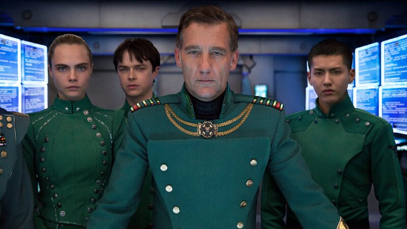 Von links: Sergeant Laureline (Cara Delevingne), Major Valerian (Dane DeHaan), Commander Arun Filitt (Clive Owen) und Sergeant Neza (Kris Wu) Die Verwendung des sendungsbezogenen Materials ist nur mit dem Hinweis und Verlinkung auf TVNOW gestattet.
