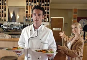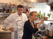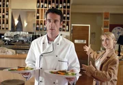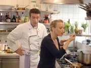 Der Sternekoch Frank Drannemann (Heio von Stetten) bekommt wider Willen mit Marlene Renner (Tina Ruland) eine Geschäftspartnerin, die recht eigenwillige Vorstellungen von der Dekoration eines Restaurants hat.Bild: © ARD Degeto/Katrin Knoke