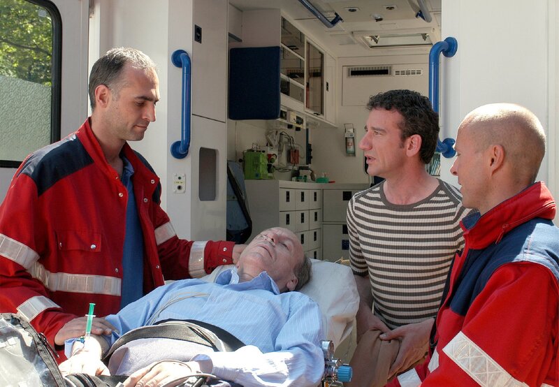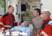 Nach einer Herzattacke wird Franks (Heio von Stetten, 2. von rechts) Schwiegervater und Geschäftspartner Georg (Rüdiger Vogler, Mitte) ins Krankenhaus eingeliefert.Bild: © ARD Degeto/Katrin Knoke