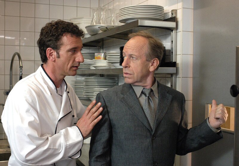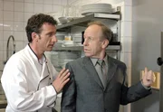 Frank (Heio von Stetten, links) und sein Schwiegervater Georg (Rüdiger Vogler) führen gemeinsam ein Feinschmecker-Restaurant.Bild: © ARD Degeto/Katrin Knoke