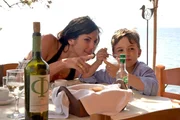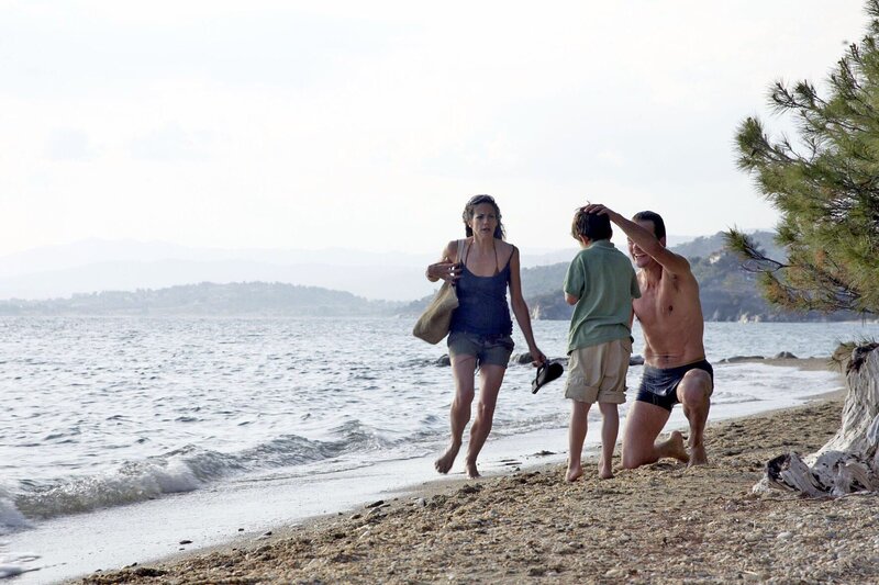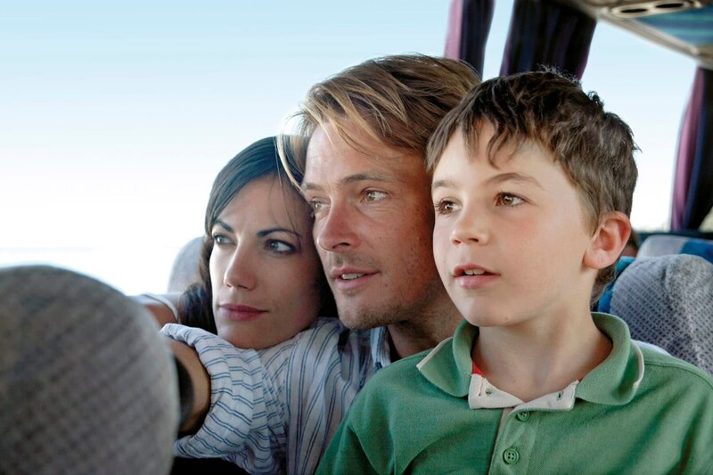 Griechenland-Urlaub zu dritt: Es ist das erste Mal, dass Claudia (Bettina Zimmermann, l.) zusammen mit ihrem Freund Thomas (Andreas Pietschmann, M.) und ihrem neunjährigen Sohn Timmy (Jannis Michel, r.) verreist.Bild: © TVP