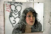 Claudia (Bettina Zimmermann) erstarrt vor Schreck, als sie im Spiegel einer maroden Tankstelle die Initialen C und G entdeckt.Bild: © SAT.1 / Xeni Taze Eigenproduktionsbild frei