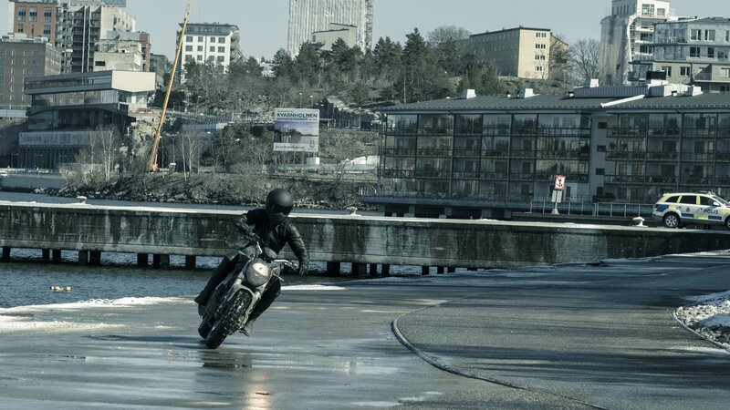 Lisbeth Salander (Claire Foy) jagt vor der anrückenden Polizei davon.Bild: © ZDF und Nadja Klier