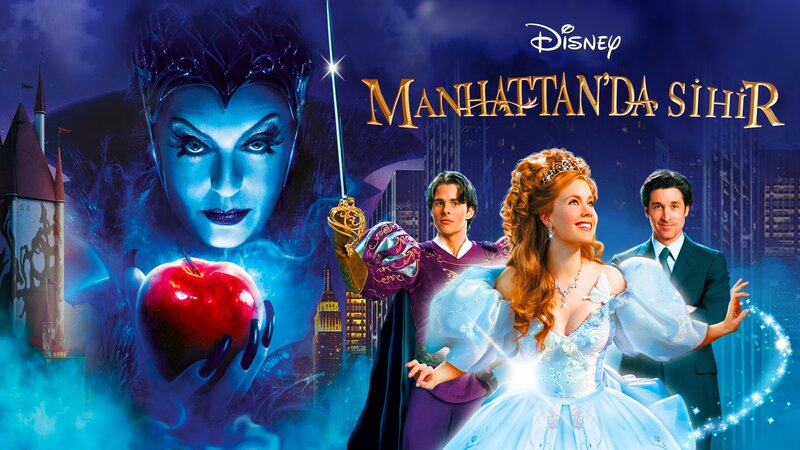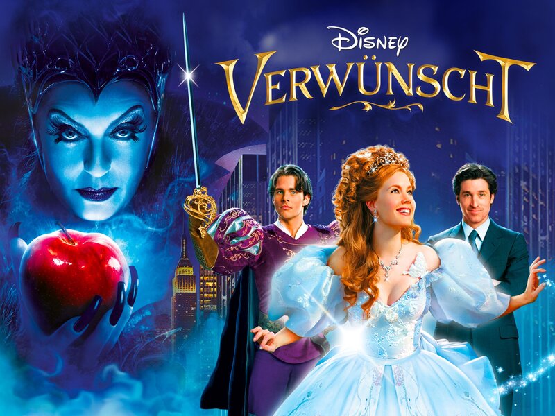 Eine Prinzessin irrt durch die Straßen New Yorks auf der Suche nach ihrem Schloss und ihrem Traumprinzen. Sie landet im Haushalt eines verwitweten Anwalts, dessen kleine Tochter die Frau, die alle Tiere nach ihrer Pfeife tanzen lässt, tief in ihr Herz schließt. Prinzessin Giselle (Amy Adams) lebt in ihrem animierten Märchenland Andalasien und hat nur ein Ziel vor Augen - die Heirat mit ihrem Traumprinzen Edward (James Marsden). Doch die eifersüchtige Königin Narissa (Susan Sarandon) fürchtet um ihren Thron. Um Giselle auszuschalten, katapultiert die Zauberin das Mädchen an einen der denkbar entferntesten Orte: ins lärmende New York, wo Giselle - nun ein echter Mensch - am Times Square aus der Kanalisation ins Freie klettert. Völlig verwirrt von der neuen Umgebung macht sich Giselle auf die Suche nach Edward und ihrem Schloss - und begegnet dem verwitweten Anwalt Robert (Patrick Dempsey) und seiner kleinen Tochter Morgan (Rachel Covey), die total begeistert von Giselle ist. Morgan überredet den Vater, die merkwürdig kostümierte und daherredende Fremde erst mal mit nach Hause zu nehmen - in eine großzügige, aber völlig unaufgeräumte New Yorker Wohnung. Giselle schafft Ordnung mithilfe ihrer tierischen Freunde, zu denen auch Backenhörnchen Pip gehört. Unterdessen sind Edward und sein Diener Nathaniel (Timothy Spall) ebenfalls aus ihrer animierten Welt in Manhattan eingetroffen, wo der großspurige Edward seine Prinzessin wieder zu finden hofft. Doch Nathaniel spielt falsch - er soll Giselle in Narissas Auftrag ausschalten - was Pip immer wieder verhindern kann. Und dann wäre da noch Roberts ob der neuen Frau in seinem Leben eifersüchtige und misstrauische Freundin Nancy (Idina Menzel). Doch am Ende findet jeder "Topf seinen Deckel" und Traum- und reale Welten vereinen sich zum Besten aller, nachdem die böse Narissa noch einen ganz großen Auftritt hinlegen konnte - den letzten allerdings. Bekannter und beliebter Realfilm aus dem Hause Disney, dessen erste zehn Minuten komplett animiert sind. Sobald die Prinzessin auf den Times Square klettert, setzt die Realfilmhandlung ein, die immer wieder Trickelemente enthält. Dazu gehören auch die vielen fantasievollen Szenen mit allerlei Getier. Neben Amy Adams ("Man of Steel", Batman vs. Superman") setzten die Produzenten auf Frauenschwarm Patrick Dempsey, der nach einem Karrieretief mit der Serie "Grey's Anatomy" ein erfolgreiches Comeback hatte. Gesungen wird auch. Außerdem soll eine Fortsetzung von "Verwünscht" geplant sein, in der Amy Adams erneut die Rolle der Giselle spielen könnte.