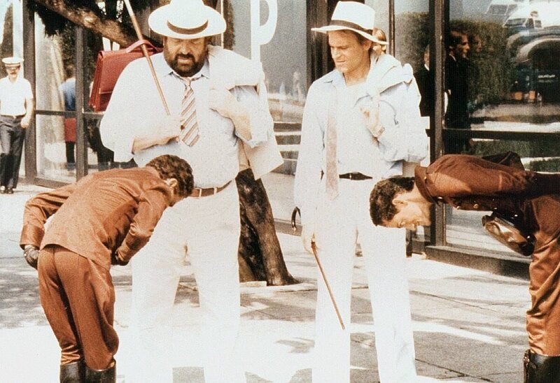 Um das Leben zweier schwerreicher Geschäftsleute zu schützen, werden Stuntman Elliot (Terence Hill, r.) und der bärbeißige Jazz-Saxophonist Greg (Bud Spencer, l.) für je 1 Million Dollar als schlagkräftige Doppelgänger engagiert. Diese finden jedoch trotz aller Gefahren schnell Gefallen am Jet-Set-Leben - und warum sollten sie eigentlich auf ihren Reichtum wieder verzichten?Bild: © CH Media