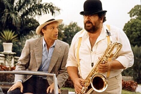 Warum sollte der Saxophonist Greg (Bud Spencer, l.) eigentlich auf den "neu erworbenen" Reichtum wieder verzichten?Bild: © MG RTL D / Betafilm