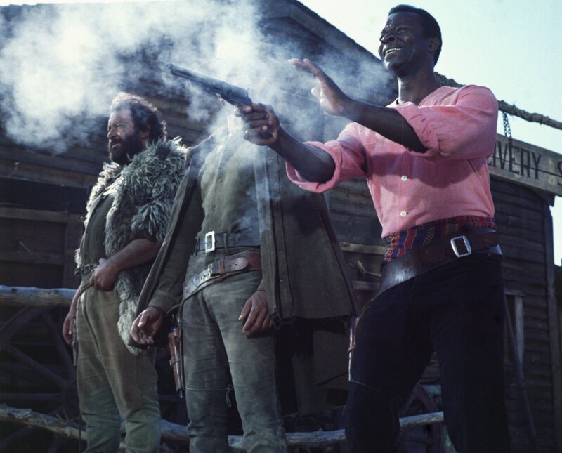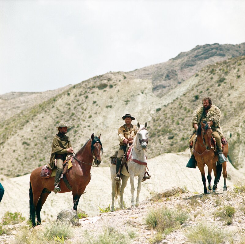 Cat Stevens (Terence Hill, li.), Caco (Eli Wallach) und Hutch Bessy (Bud Spencer); Cat Stevens (Terence Hill, li.), Caco (Eli Wallach) und Hutch Bessy (Bud Spencer)