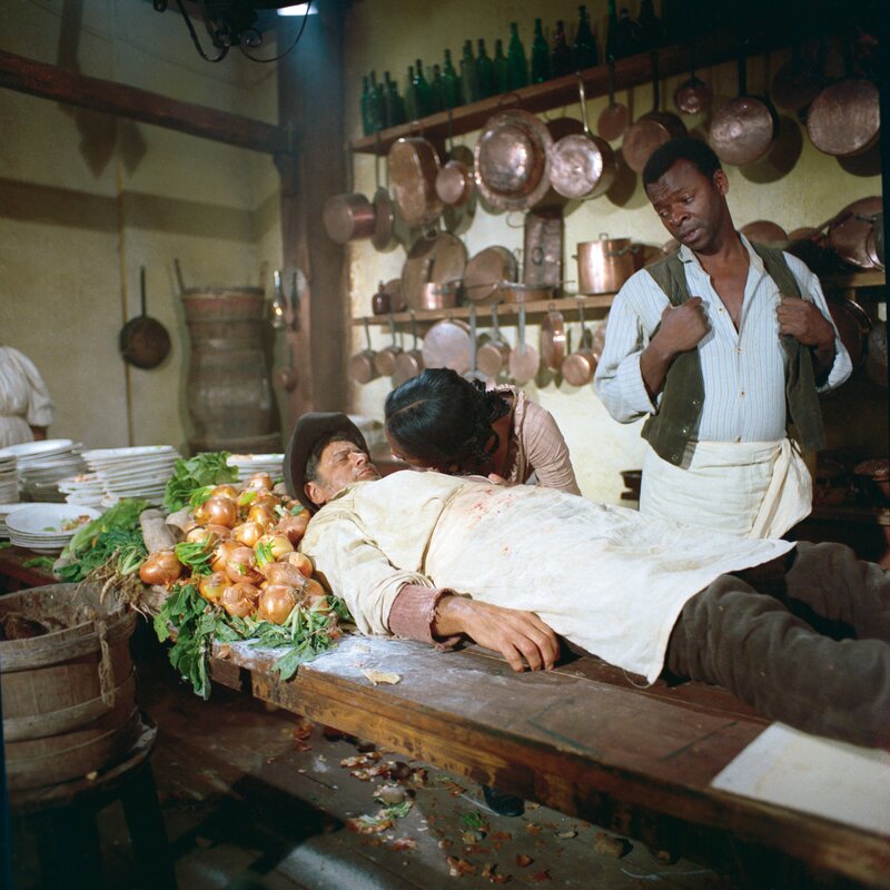 Cat Stevens (Terence Hill, li.), Cacopoulos (Eli Wallach) und Thomas (Brock Peters, re.); Cat Stevens (Terence Hill, li.), Cacopoulos (Eli Wallach) und Thomas (Brock Peters, re.)