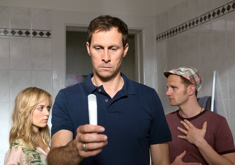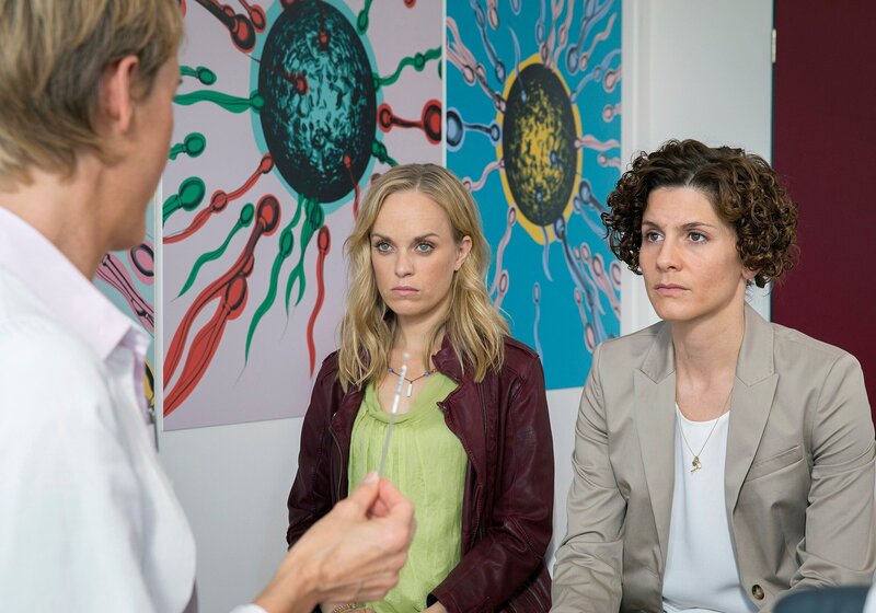 Für Neele und ihre Lebenspartnerin Steff scheint der Traum vom eigenen Kind endlich in Erfüllung zu gehen: Steff ist schwanger. Allerdings kam es bei der künstlichen Befruchtung zu einer Verwechslung - statt ihrem sorgsam ausgewählten Samenspender erwischten sie eine Samenspende von einem schwulen Paar: Kalle und Jens wünschen sich ebenfalls ein Baby und betrachten die Verwechslung als eine Art Fügung. Während die beiden Männer sich auf ihre Zeit als aktive Väter freuen, sehen Neele und Steff ihre harmonische Dreisamkeit in Gefahr. Doch trotz aller Bedenken lässt das ungleiche Vierergespann es auf einen Versuch ankommen. Die glänzend gespielte Gesellschaftskomödie behandelt ein zeitgemäßes Thema auf gleichermaßen intelligente wie frisch-freche Weise. Endlich schwanger! Für die Hamburger Literaturdozentin Neele (Christina Hecke) und ihre Lebenspartnerin, die Zahntechnikerin Steff (Friederike Kempter), geht damit ein Traum in Erfüllung. Schon lange wünschen sich die beiden ein Kind. Allerdings werden die Pläne von künftiger Mama-Mami-Baby-Dreisamkeit jäh zerstört - denn wie sich herausstellt, kam es bei der künstlichen Befruchtung zu einer folgenschweren Verwechslung: Der Erzeuger ist nicht der sorgsam ausgesuchte junge Samenspender ohne Vaterambitionen, sondern der freundliche Kalle (Christian Näthe), der mit seinem Mann Jens (Marc Hosemann) ebenfalls vom eigenen Nachwuchs träumt. Da die Leihmutter des sympathischen Männerpaares im letzten Moment einen Rückzieher machte, sehen die beiden in der Verwechslung eine Art Fügung des Schicksals. Sie freuen sich schon darauf, dem Mutterpaar als aktive Väter zur Seite zu stehen - am liebsten Wand an Wand im gemeinsamen Vorstadt-Doppelhaus. Steff und Neele fallen angesichts dieser Idee aus allen Wolken. Für die beiden ist allein schon der Gedanke an eine geteilte Fürsorge der reinste Albtraum. Sie sehen in dem Sportreporter Kalle und dem Makler Jens lediglich zwei schwule Spießer mit gänzlich anderen Lebenseinstellungen. Vor allem Neele lässt nichts unversucht, um die lästigen Kindsväter zu vergraulen. Erst nach einigen Reibereien und verbalen Scharmützeln wird dem ungleichen Vierergespann klar, dass es bei der Sache nicht um persönliche Interessen gehen darf, sondern um ihr gemeinsames Kind: Statt Gezeter und Gezerre ist Kooperationsbereitschaft gefragt. Und tatsächlich stellt sich mit der Zeit ein gegenseitiges Vertrauen und so etwas wie ein "Vier"-Gefühl ein. Doch es kommt anders - und die angehende Patchwork-Regenbogenfamilie wird vom Schicksal auf eine harte Probe gestellt. Die Kinderwünsche gleichgeschlechtlicher Paare sind ein hochaktuelles, oft umstrittenes Thema. Die Gesellschaftskomödie "Vier kriegen ein Kind" zeigt mit hintersinnigem Humor, aber auch ernsteren Untertönen, dass gute Elternschaft in allererster Linie eine Frage der Herzensbildung ist. Drehbuchautor Volker Krappen und Regisseur Matthias Steurer zeichnen die vier Hauptfiguren mit einem feinen Gespür für charakterliche Eigenheiten und in einer gelungenen Balance aus Lebensnähe und sanft-ironischer Überzeichnung. Diese Sendung ist nach der Ausstrahlung drei Monate lang in der ARD Mediathek verfügbar.