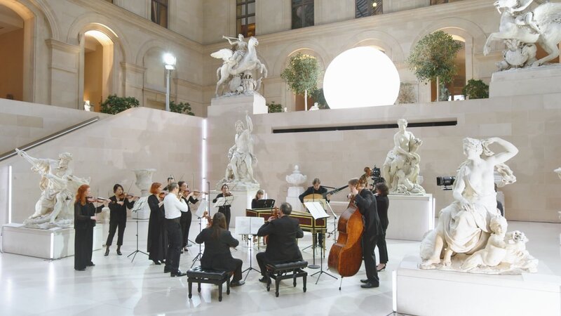 Der Louvre als Bühne für ein glanzvolles Konzert: Im Zuge der Neugestaltung des Louvre-Museums, die Staatspräsident François Mitterrand in den 80er Jahren initiierte, entstand auf dem Parkplatz des Finanzministeriums die heutige Cour Marly. In diesem weitläufigen, glasüberdachten Innenhof wurden Skulpturen, die vor Witterung geschützt werden sollten, aufgestellt. Ursprünglich standen die Statuen in den Gärten der Königsresidenzen des 17. und 18. Jahrhunderts, etwa jenen der Schlösser von Marly und Versailles oder des Tuilerien-Palastes. An diesem unglaublich wirkungsvollen Ort in Paris wurde am 11. April 2023 ein ganz besonderes Konzert aufgezeichnet. Auf historischen Instrumenten bringt das Ensemble Le Concert de la Loge unter Leitung des Geigers Julien Chauvin ein facettenreiches Programm ganz im Geiste der 1725 eingeführten Concerts spirituels zu Gehör. Den Auftakt bildet eines der zahlreichen Violinkonzerte Vivaldis, gefolgt von seiner Sinfonia alla Rustica und Mozarts 40. Symphonie mit dem Solobratscher Amihai Grosz. Zwischen den Instrumentalstücken interpretiert Marina Viotti Arien aus Opern von Vivaldi und Mozart. Der wundervolle Mezzosopran und die Intensität des Vortrags der Sängerin sowie ihre Vertrautheit mit Julien Chauvin sorgen für eine stimmungsvolle musikalische Darbietung voller Temperament und Gefühl. Ein Ausnahmekonzert vor attraktiver Kulisse. Aufzeichnung vom 11. April 2023 im Louvre, Paris.