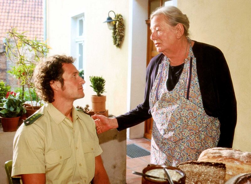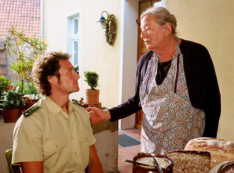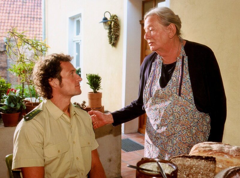 Der nette Polizist Thomas (Markus Knüfken) sucht Rat bei seiner Oma Grete (Gudrun Okras).Bild: © ARD Degeto