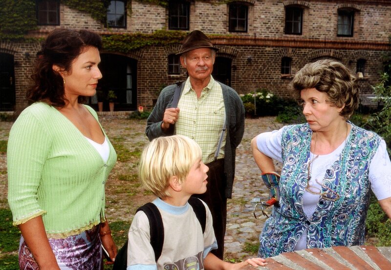 Anna (Christine Neubauer) ist erleichtert. Der nette Polizist Thomas (Markus Knüfken, 3. v. re.) hat Annas Sohn Tobi (Paul Metzger, 2. v. li.) gefunden, der mit seinem kauzigen Onkel Jakob (Ralf Wolter, re.) ausgebüchst ist.Bild: © ARD Degeto