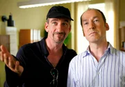Der smarte Gregor (Heio von Stetten, links) erläutert Arnie (Ulrich Noethen, rechts), wie er sich den Praxis-Anbau im Detail vorstellt.Bild: © ARD Degeto/Erika Hauri