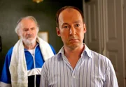 Der störrische Mieter Zabel (Fred Stillkrauth, links) eröffnet Arnie (Ulrich Noethen, rechts), dass er nicht die Absicht hat, seine Wohnung zu räumen.Bild: © ARD Degeto/Erika Hauri