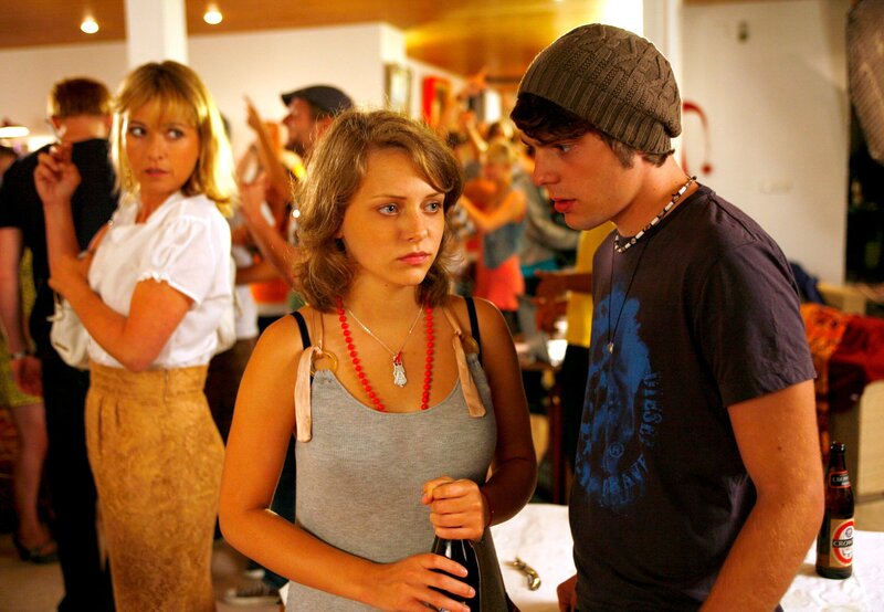 Skeptisch beobachtet Ines (Katharina Abt, links) einen Streit zwischen ihrer Tochter Pia (Vanessa Krüger) und deren Freund Lenny (Marco Bretscher-Coschignano).Bild: © ARD Degeto/Erika Hauri