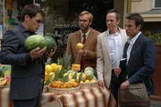 Adam (Marco Girnth, 2.v.r.) zeigt Ulf (Moritz Lindbergh, l.), Karl (Jan Sosniok, 2.v.l.) und Stefan (Dominic Boeer, r.) die unterschiedlichen Brustgrößen vor und nach dem Orgasmus - anhand von Orangen.Bild: © ProSieben / Stefan Erhard