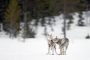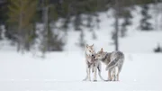In der gesamten Region zwischen Finnland und Russland gibt es nur 250 Wölfe. Olivier Larrey und Tanguy Dumortier haben das Privileg, eines der Rudel zu beobachten.Bild: © Olivier Larrey