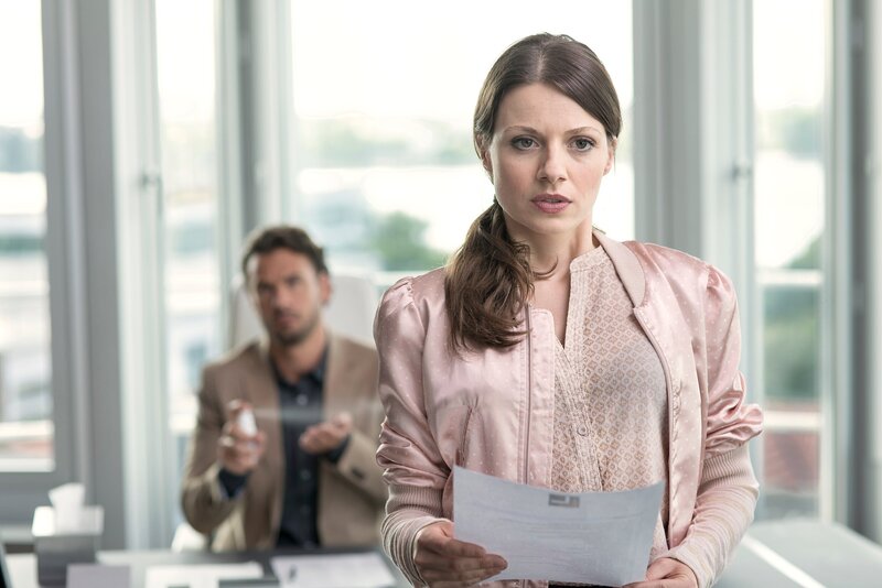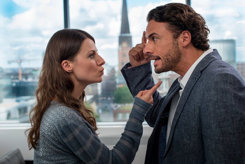 Anna Thönissen (Julia Hartmann) ist angenervt von dem Macho-Gehabe ihres Chefs (Stephan Luca).Bild: © NDR/Boris Laewen