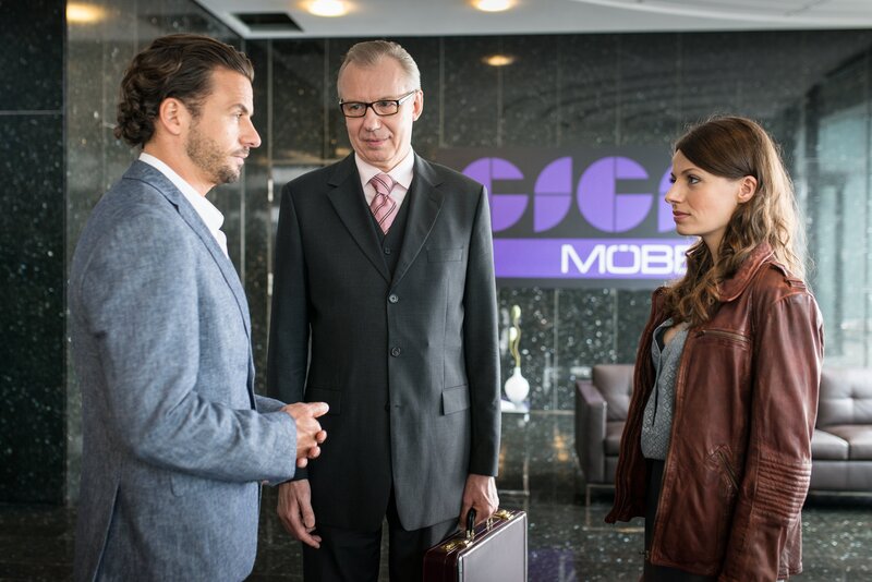 Die neue Mitarbeiterin Anna Thönissen (Julia Hartmann) wird freundlich von ihrem Chef Max Lehmann (Stephan Luca) und Kollege Michael Fischer (Ludger Pistor) in Empfang genommen.Bild: © NDR/Boris Laewen