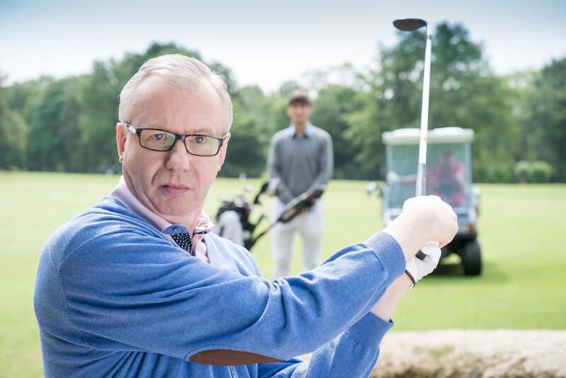 ARD/NDR WARUM ICH MEINEN BOSS ENTFÜHRTE, am Freitag (14.11.14) um 20:15 Uhr im ERSTEN. Michael Fischer (Ludger Pistor) entspannt sich gern beim Golfen.Bild: © NDR/Boris Laewen