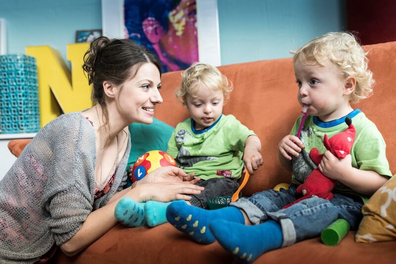 Die alleinerziehende Mutter Anna (Julia Hartmann) mit ihren Zwillingen (Liam und Bela Stein).Bild: © NDR/Boris Laewen
