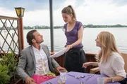 ARD/NDR WARUM ICH MEINEN BOSS ENTFÜHRTE, am Freitag (14.11.14) um 20:15 Uhr im ERSTEN. Anna Thönissen (Julia Hartmann) lässt sich nichts bieten und schüttet dem meckernden Gast Max (Stephan Luca) das Essen auf den Schoss. Stefanie (Janin Reinhardt) beobachtet empört das Geschehen.Bild: © NDR/Boris Laewen