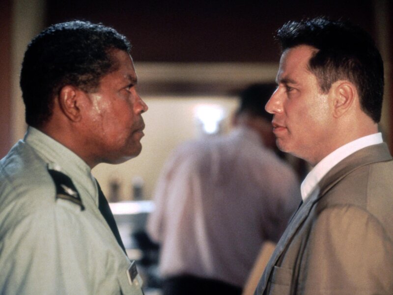 Paul Brenner (John Travolta, l.), Untersuchungsbeamter beim Militär, und Colonel Kent (Timothy Hutton, r.) ermitteln in einem verstrickten Fall von Vergewaltigung und Mord.