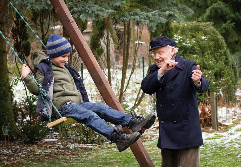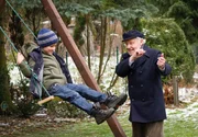 Opa Friedrich (Edgar Bessen) amüsiert sich mit seinem Urenkel Nick (Jann-Piet Puddu, l.).Bild: © ARD Degeto/NDR/Georges Pauly