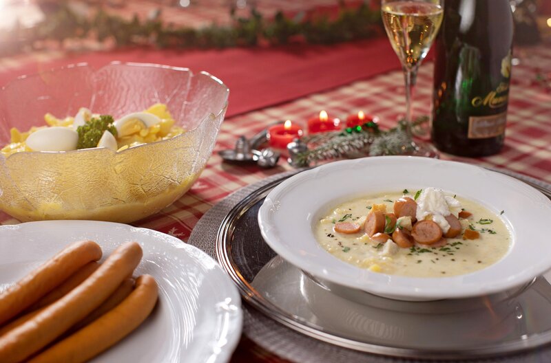 Aus den Resten des beliebtesten Weihnachtessen der Deutschen – Kartoffelsalat mit Würstchen – kann man eine leckere Kartoffelsuppe herstellen.Bild: © SWR/ Schwabenlandfilm GmbH / Karin Mertens