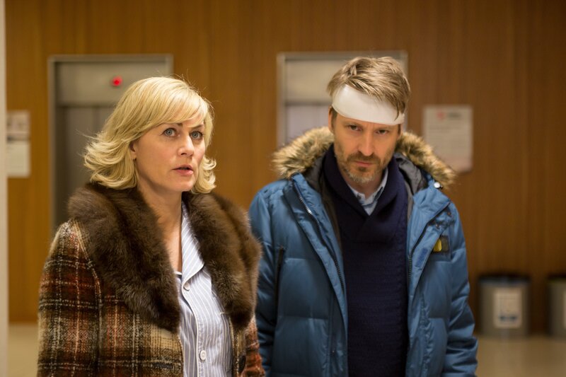 Regina (Gesine Cukrowski, l.) holt ihren Mann Roger (Max von Pufendorf, r.) im Krankenhaus ab.Bild: © To Kuehne / ZDF