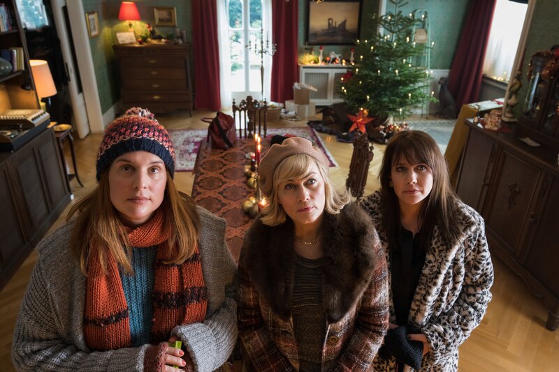 Die Weihnachtstöchter von links: Katarina (Elena Uhlig), Regina (Gesine Cukrowski), Diana (Felicitas Woll) schauen andächtig zum Porträt des gemeinsamen Vaters hoch.Bild: © christian lüdeke / ZDF