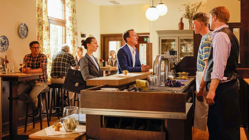 Andreas lernt die neue Mannschaft kennen. Ulli (Nico Michels), Gregor (Luca Davidhaimann), Matze (Simon Rupp, verdeckt), Waldemar (Matthias Sander), Manuel (Christian Forst), Rudi (Jonas Relitzki), Tino (Tanino Camilleri), Michael (Jochen Riemer, verdeckt), Andreas (Wotan Wilke Möhring) v.l.