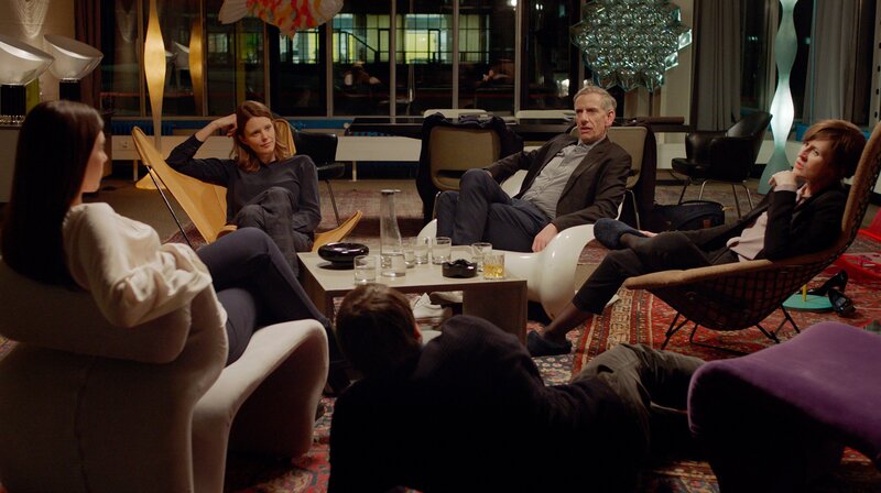 Die junge Klimaforscherin Phoebe kommt mit einem Lehrauftrag neu an das Institut für Kybernetik der Berliner Universität. Dort wird der Klimawandel mit Hilfe von „Virtueller Realität“ simuliert. Dem Institut droht die Schließung, weil Forschungserfolge ausbleiben. Alles hängt von einer erfolgreichen Evaluation ab. - Victoria von Krolock (Anna Papenburg, l.), Phoebe (Sarah Ralfs, 2.v.l.), Alfons Abstract-Wege (Bernd Moss, 2.v.r.), Brenda Berger (Sophie Rois, r.) und Julius Kelp (Philipp Hauß, vorne).Bild: © rbb/Amerikafilm/Carlos Andrés Lopéz