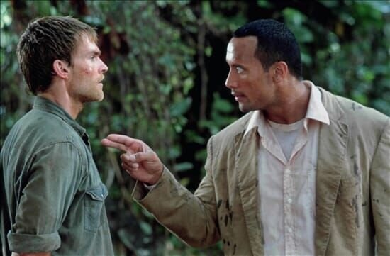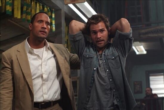 Beck (Dwayne 'The Rock' Johnson, l.) will seinen Job als Kopfgeldjäger an den Nagel hängen. Doch vor seinem Abgang soll er den starrköpfigen Travis (Seann William Scott) aus dem Amazonas zurück nach Amerika bringen.Bild: © 3+