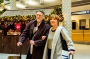 Flughafen-Weihnachtsmann Thorsten (Henning Baum) und seine Christkind-Kollegin (Xenia Tiling). Weiteres Bildmaterial finden Sie unter www.br-foto.de.Bild: © ARD Degeto/Gordon Mühle