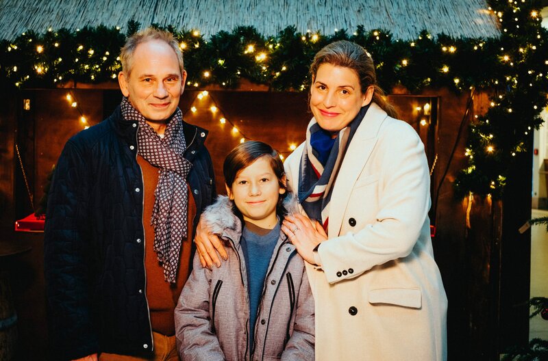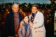 Helikopter-Mutter Jette (Elena Uhlig) und ihr Ehemann Lars (Michael Lott) sitzen mit ihrem Sohn Elias (Paul Hamm) an Heiligabend im Flughafen fest.Bild: © ORF/ARD Degeto/Gordon Mühle
