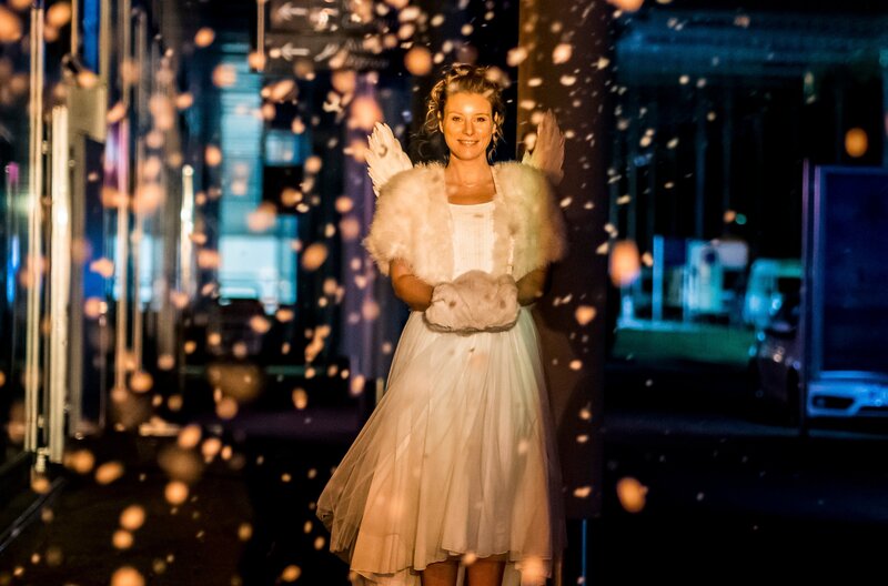 Das Flughafen-Christkind (Xenia Tiling) verbringt Heiligabend im Terminal.Bild: © ARD Degeto/Gordon Mühle
